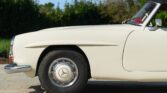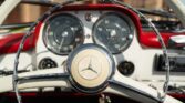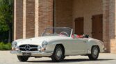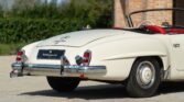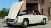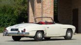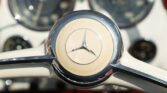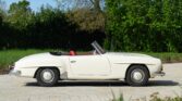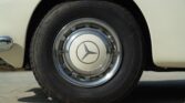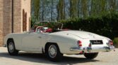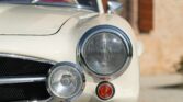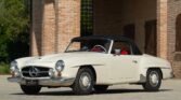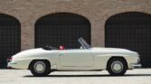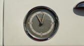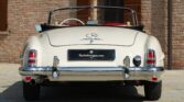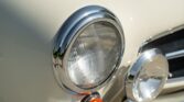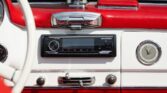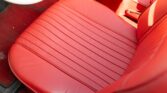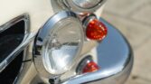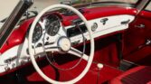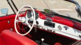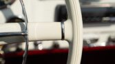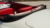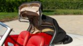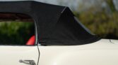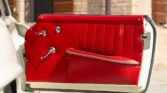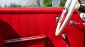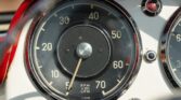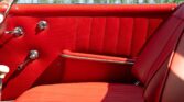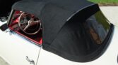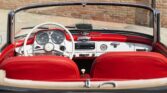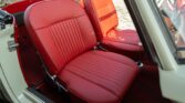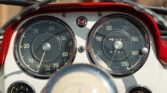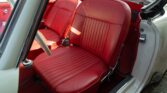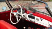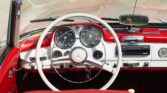 CONFORT ET INTÉRIEUR : Capote souple manuelle en tissu • Sellerie en cuir véritable d’époque • Sièges baquets classiques • Tableau de bord peint couleur carrosserie • Horloge analogique centrale • Volant en bakélite blanche à cerclage chromé • Chauffage et ventilation orientables • Vide-poches de portières.