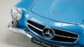 En 2020, elle a bénéficié d’une restauration esthétique. La carrosserie a été mise à nu et repeinte dans sa couleur d’origine. Pas n’importe quel bleu, mais un bleu qui vous fait vous demander pourquoi les voitures modernes sont encore proposées dans des couleurs d’imprimante. Les chromes ? Neufs ou rechromés pour un éclat digne des bijoux allemands et des lunettes de soleil italiennes. L’intérieur ? Entièrement rénové dans les couleurs d’origine, avec ces magnifiques boiseries qui confèrent à la 190 SL son élégance indescriptible. Numéros, couleurs, tout est d’origine. Sans aucun doute, l’une des 190 SL les plus authentiques, raffinées et élégantes que vous trouverez en Europe. À bientôt ? Le meilleur ou rien – Mercedes-Benz.